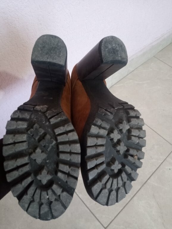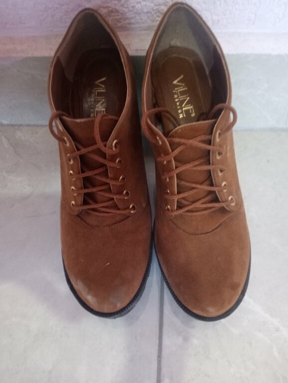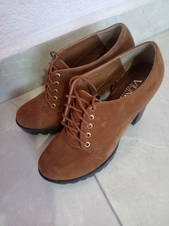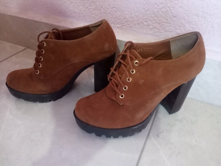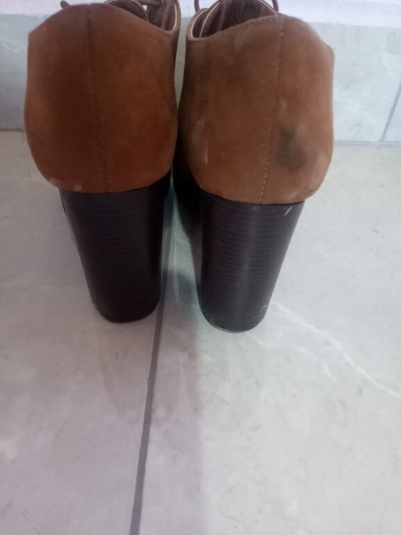 Bonitos botines de ante en color camel, sin detalles, solo sucios x estar guardados, no estan rallados ni nada, en perfectas condiciones.