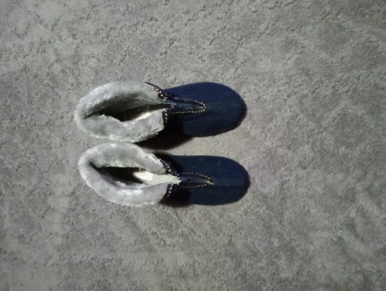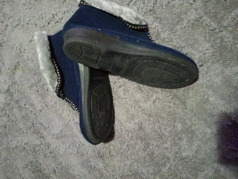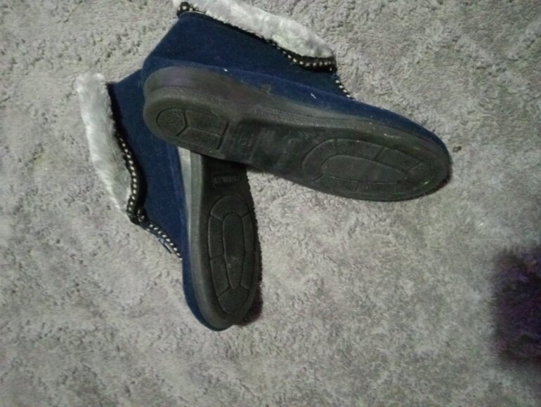 Hermosa botita mega calientitas azul 💙 tiene peluche por dentro dice talla 3 pero viene mejor a uno 2 imedio o 3 pero pie delgado ya k a mi mami no le kedaron pork tiene el pie ancho y gordito