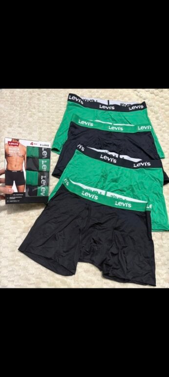 Paquete con 4 boxers, marca Levi's, talla XL, color negro y verde, nuevos con caja, originales