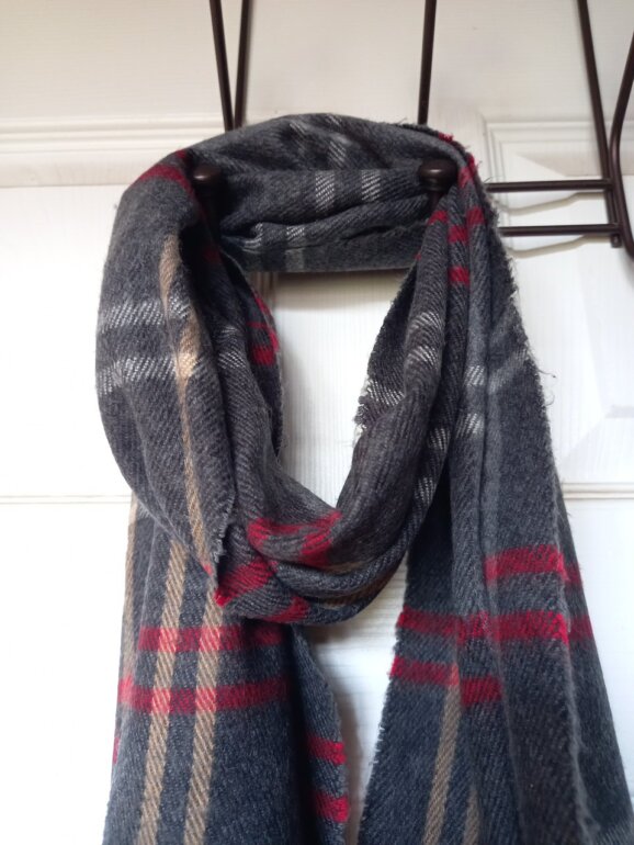 Bufanda marca Cejon hecha en Italia, acrílico 100%, color gris.