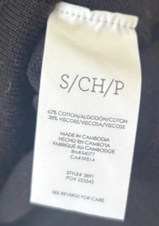 Hecho en Cambodia- 62% algodón, 38% viscosa