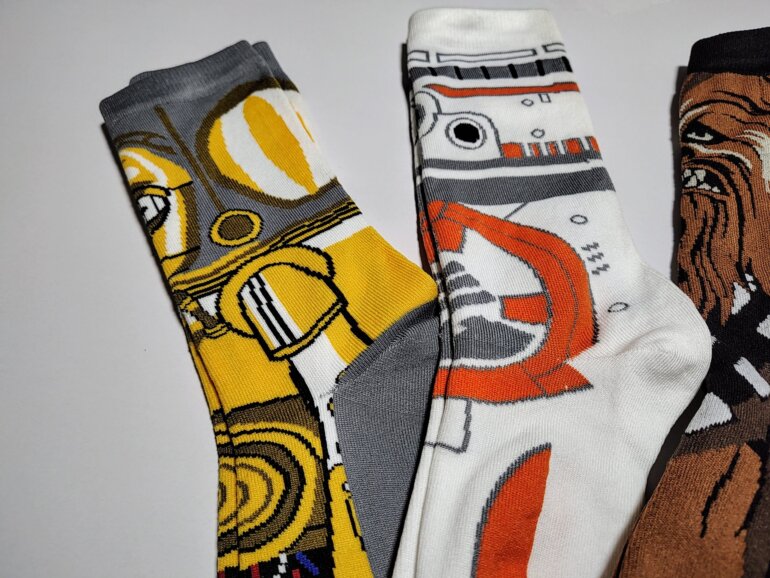 3 pares de Calcetas de personajes de Star Wars. Unitalla, quedan del No. 22 al 27 y llegan aproximadamente a mitad de la pantorrilla