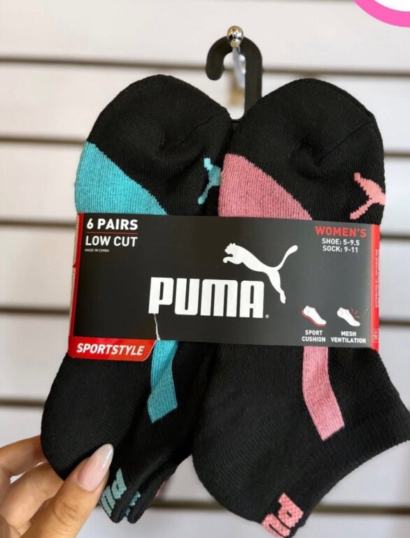 Paquete con 6 pares calcetines cortos PUMA dama negros con diseños en colores
