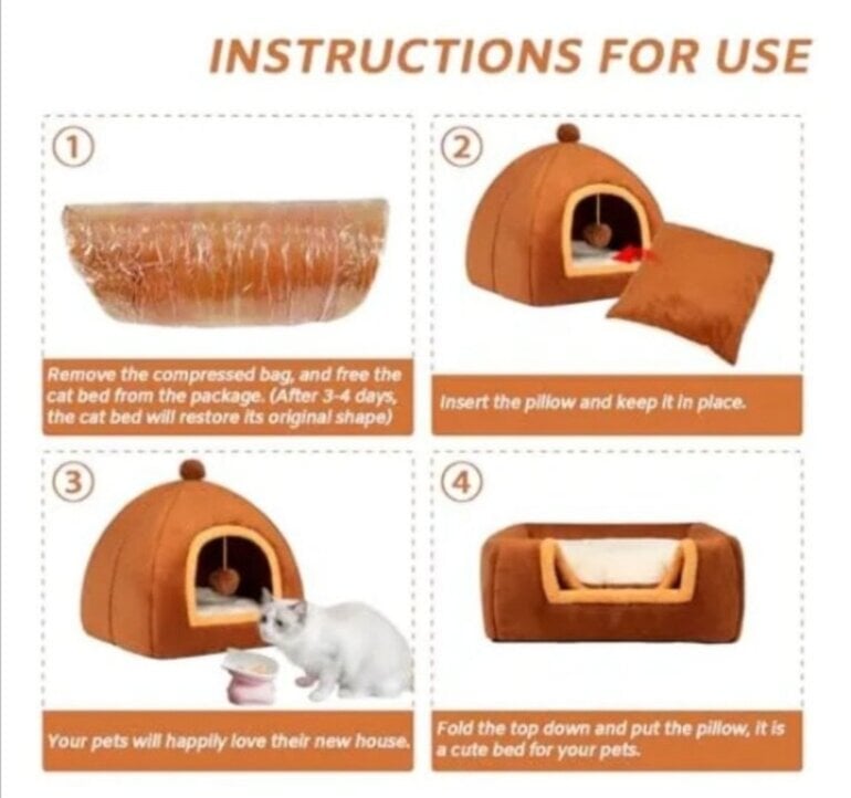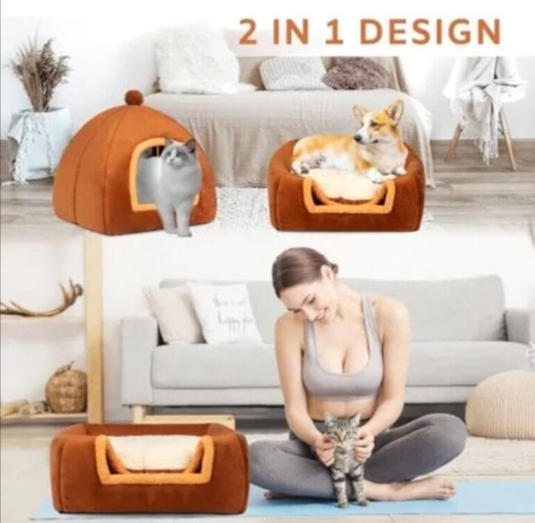 Cama tipo cueva para mascotas 😺🐾🐕. De uso interior, con cojín extraíble y lavable. Esta cama tiene un diseño que proporciona un refugio acogedor, y que también se puede transformar en una cama presionando hacia abajo la parte superior; y colocando un cojín sobre ella. 👉🏻Ver imágenes de referencia y sus etiquetas para mejor información de uso, y cuidados. P-B $540 clave nueva 171025.