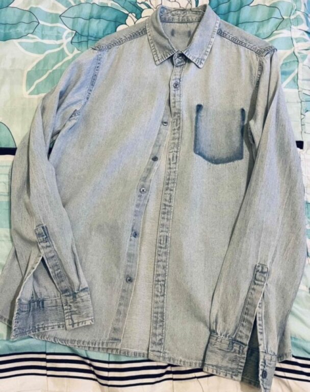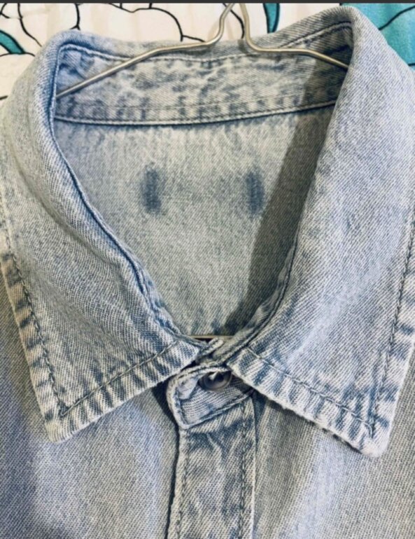 Camisa blusa de denim de algodon deslavada con detalle de bolsillo talla M ajuste normal sin detalles