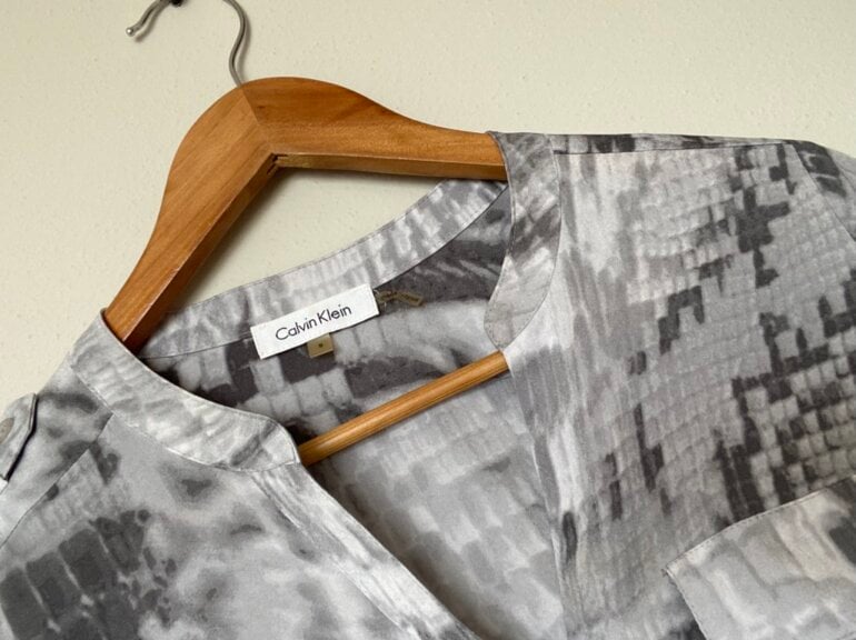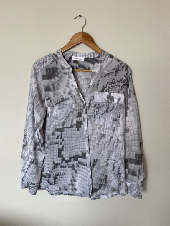 Camisa de mujer, marca Calvin Klein, color gris, solo se usó una vez. Talla S. Es tela fresca