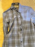 no tiene detalles ninguno , viene a sei talla chica corte normal