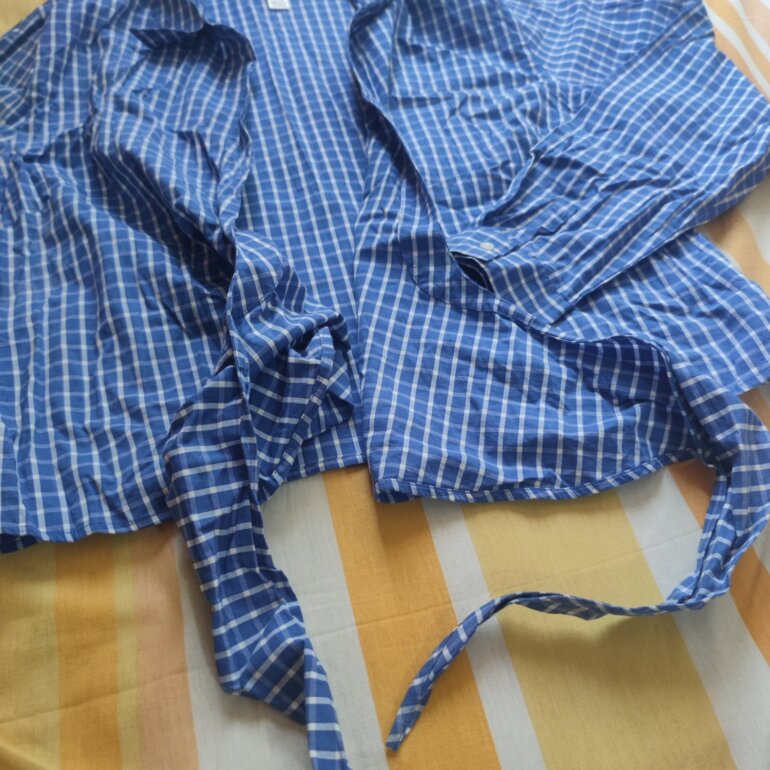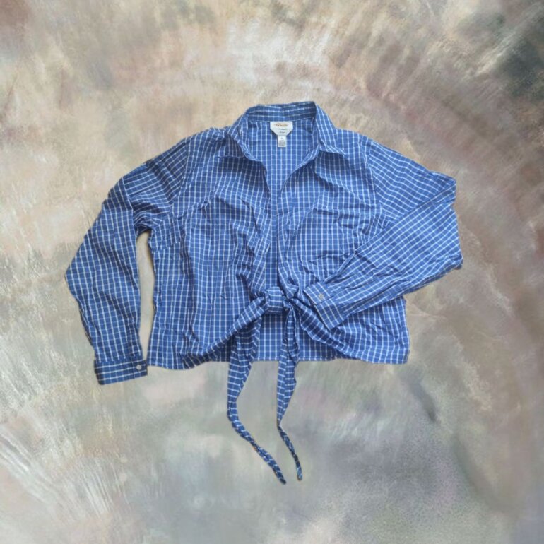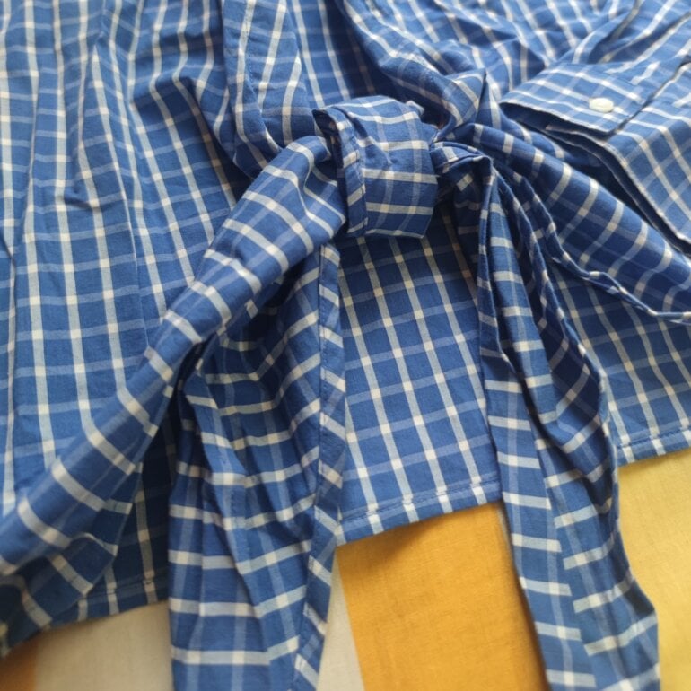 Comisa anudada a cuadros color azul, la tela es super fresca