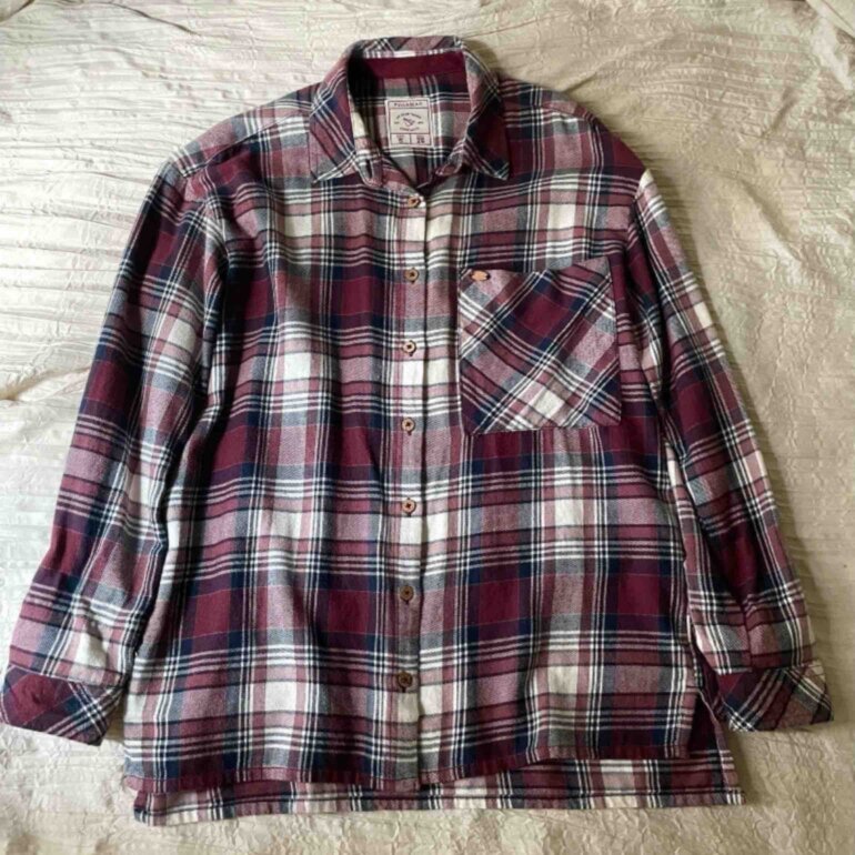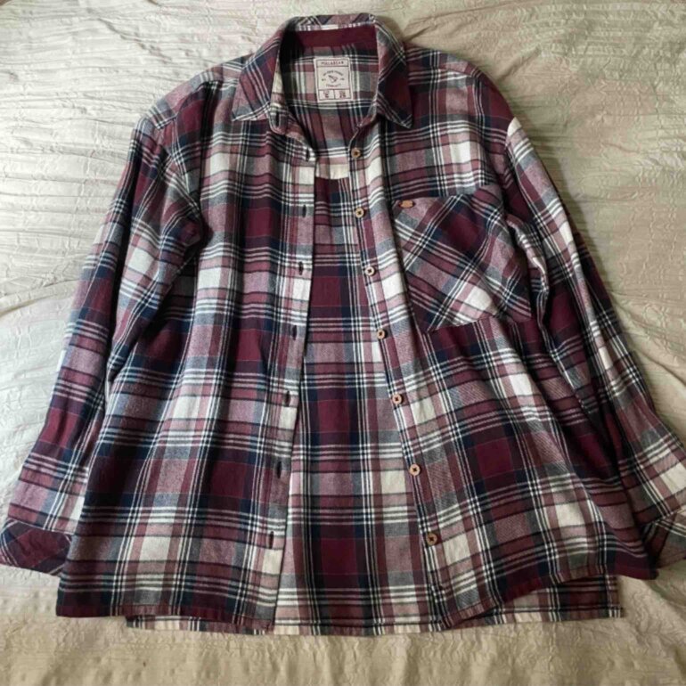 Camisa de cuadros con botones Pull&Bear, talla S pero puede quedar a M☺️ la tela se siente resistente y queda muy bonita, no presenta detalles! perfecta para este otoño 🍂