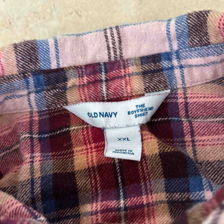 Hermosa camisa de franela de cuadros rojo con azul blanco beige y marrón de la marca Old navy talla “The boyfriend shirt”