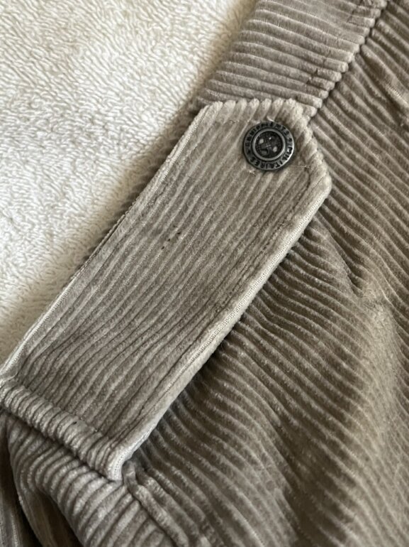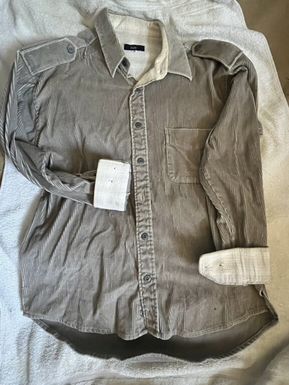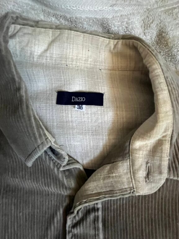Camisa de Pana con detalle en puños de lino. Talla 36. Botonadura metálica en perfectas condiciones. Dazio de Liverpool.