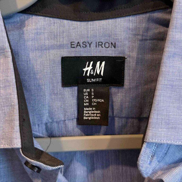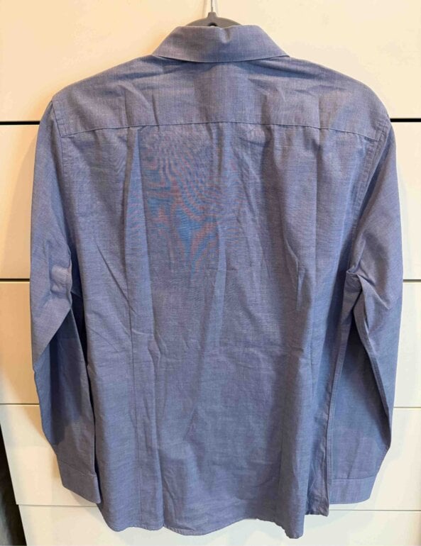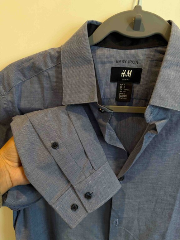 Camisa de vestir, color azul de fácil planchado. Marca H&M, talla S, corte Slim
