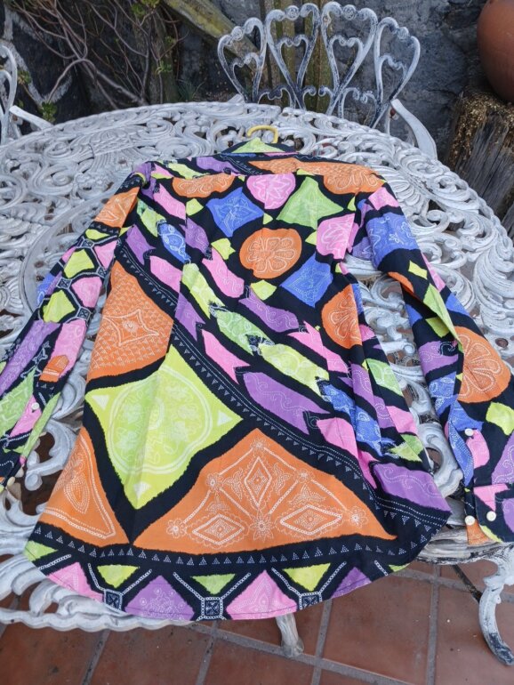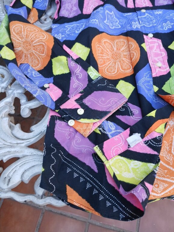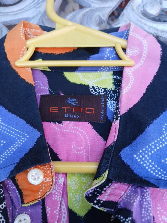 Camisa multicolor italiana,de la marca ETRO,en buenas condiciones generales,51cm de axila a axila, 50cm de hombro a hombro, 61cm de largo de la manga