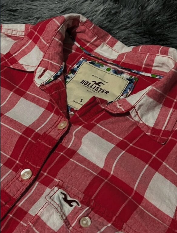 Detalles que la hacen única: > Patrón clásico de cuadros en rojo y blanco. Trae el icónico logo de la gaviota de Hollister bordado en el bolsillo del pecho. La tela es súper suave y tiene ese corte de los 2000s que se ve increíble.