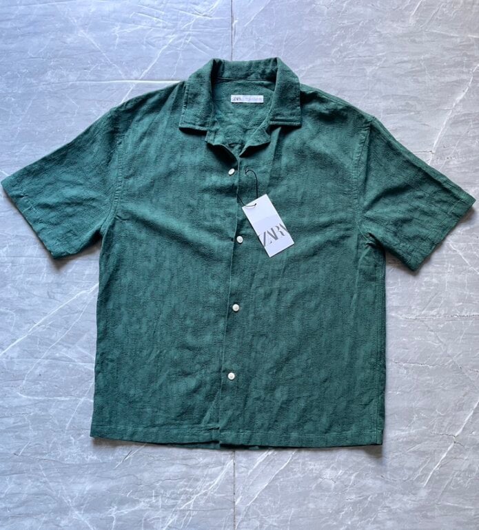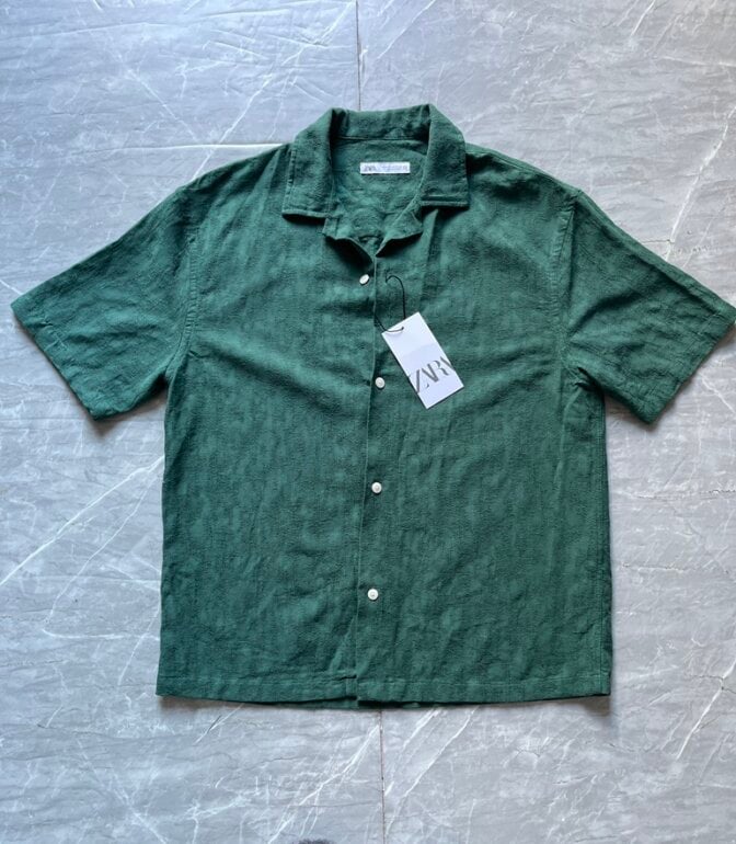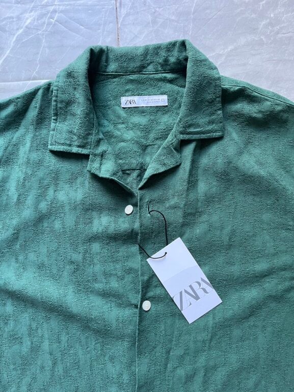Camisa de manga corta con cuello de solapa y textura tipo toalla. A estrenar con etiqueta 🏷️. TALLA_M