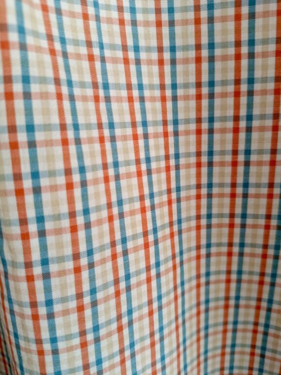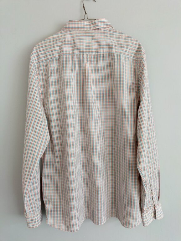 Camisa de manga larga con patrón a cuadros en tonos rojo, azul y beige. Corte clásico con cuello abotonado y bolsillo frontal con detalle bordado. Tela ligera y cómoda, perfecta para looks relajados o capas urbanas. Talla G, en excelente estado y con etiqueta. ¡Ideal para quienes buscan estilo sin esfuerzo!