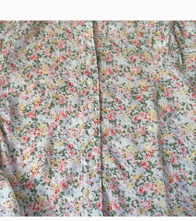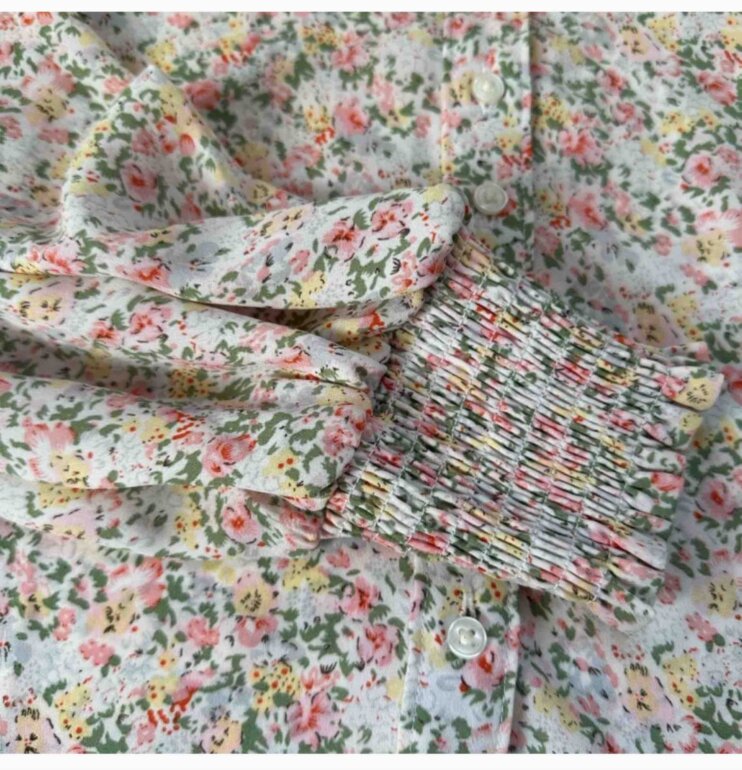 Camisa libáis floreada de manga larga más amplia de la talla realmente sería S que viene en las mangas, tiene la tela como