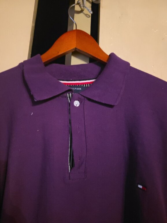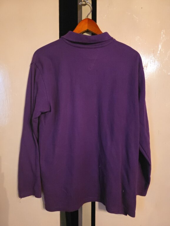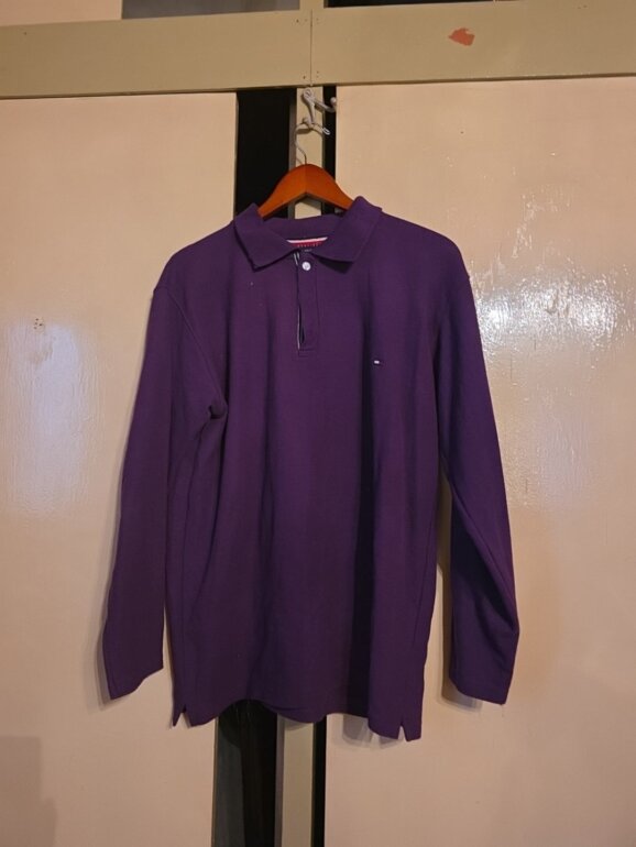 Camisa tipo polo con cuello y Violeta/Morado oscuro. manga larga.