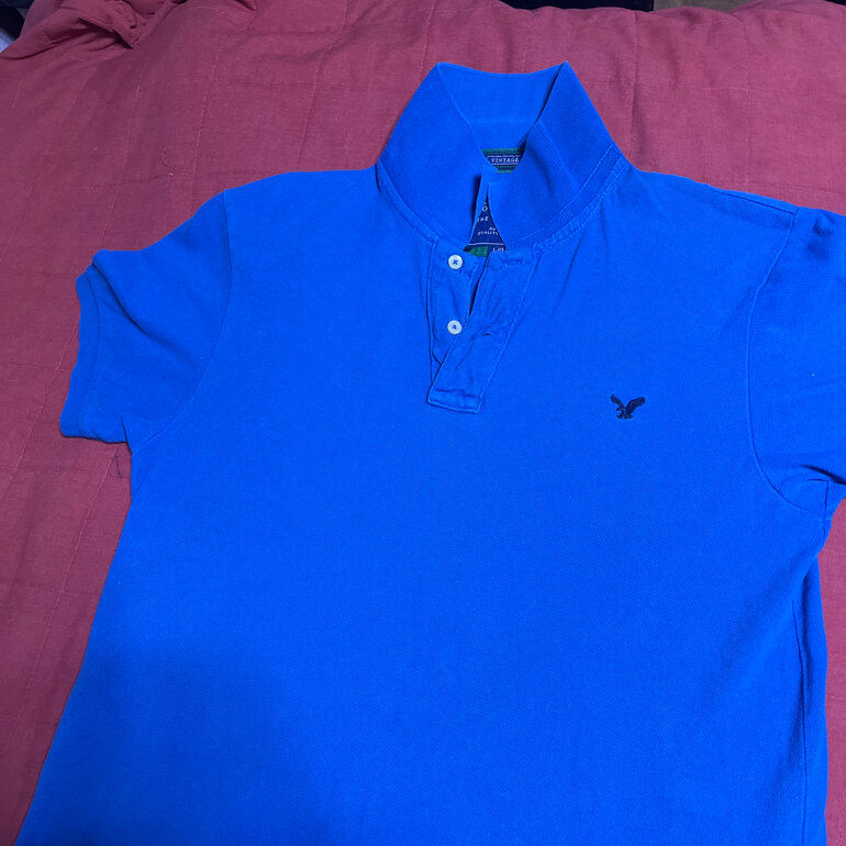 Una camisa de la marca, American Eagles outfits, tipo polo, en color azul cielo, en muy buenas condiciones sin ningún detalle