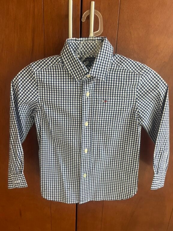 Camisa TOMMY para niño a cuadros azul marino y blanco Talla 4-5 años usada una sola vez .