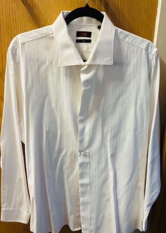 Camisa para traje, blanca, hombre, corte SLIM, talla L (18). 100% algodón portugues, con líneas super elegantes.