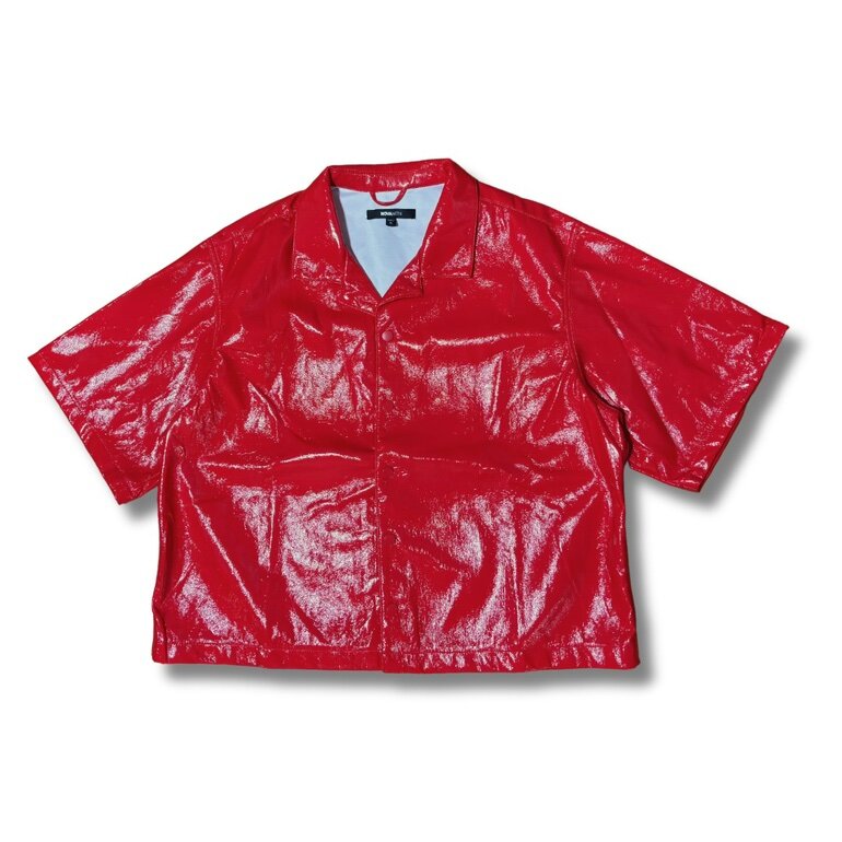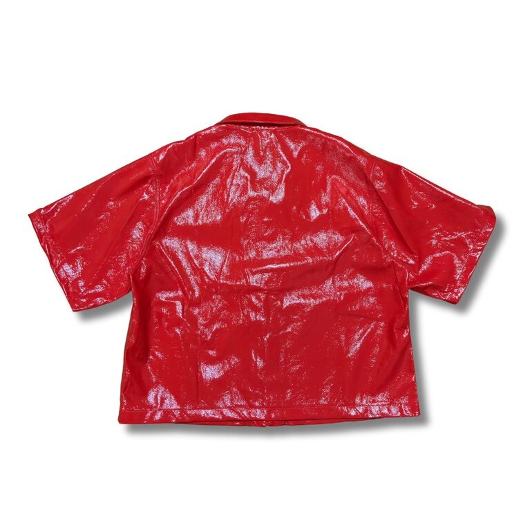 Camisa boxy de vinil efecto charol, broches a presión lisa.