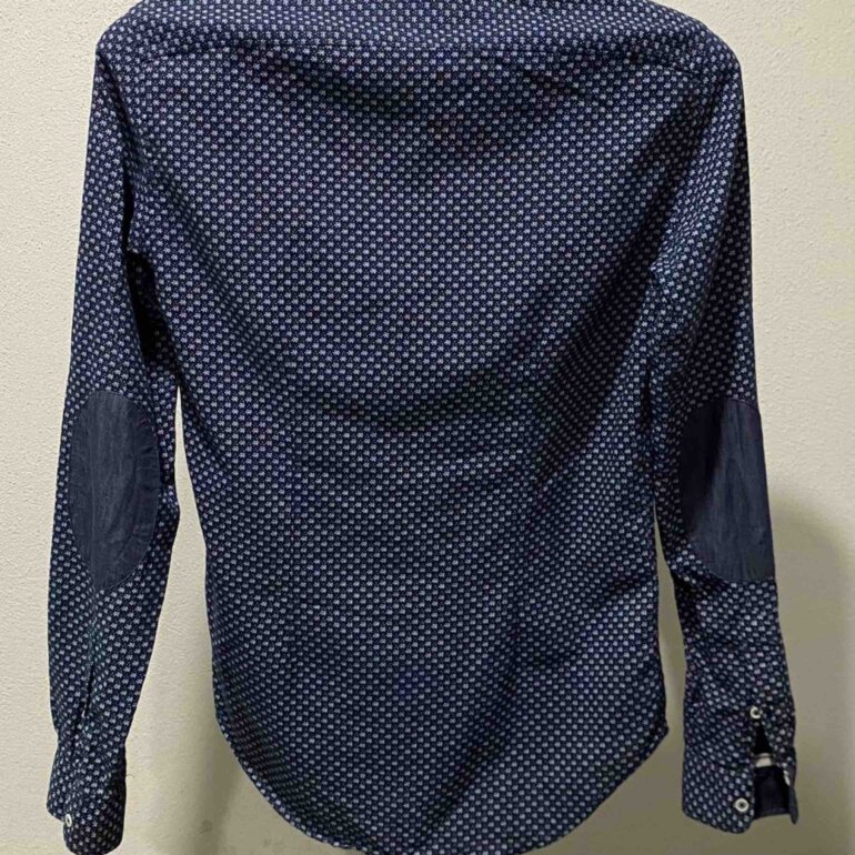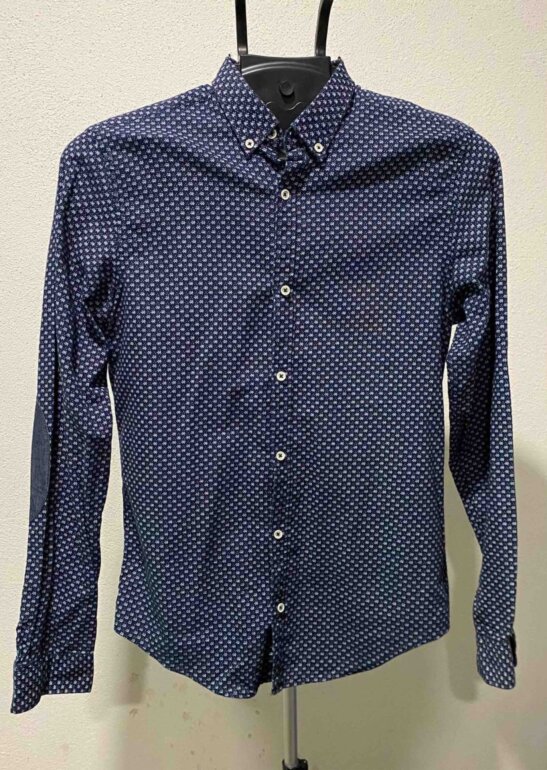 Camisa azul de mangas largas con estampado blanco, talla S. Marca Zara Man. Sin detalles