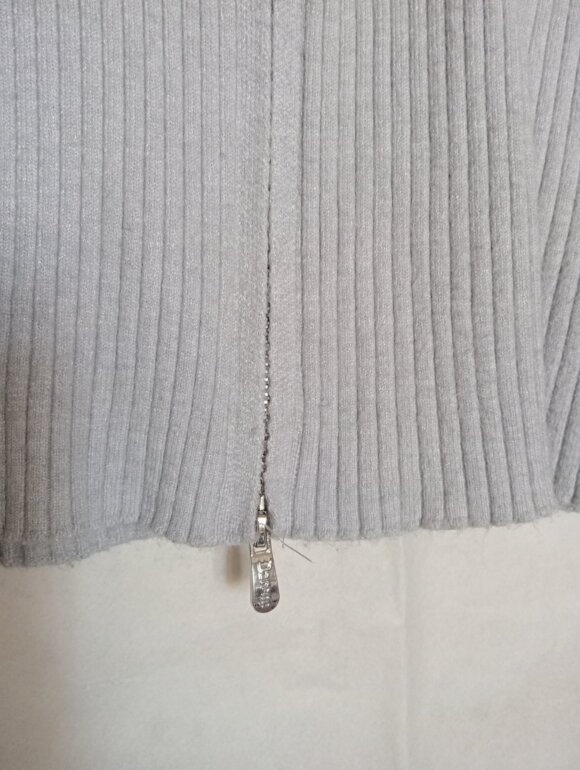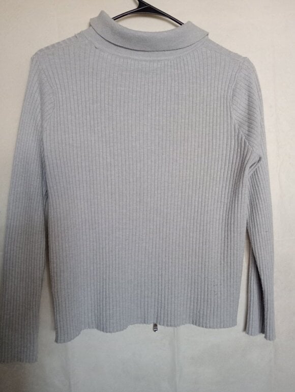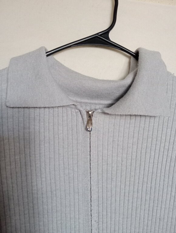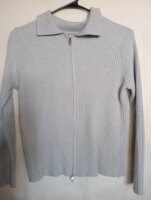 Cárdigan de cuello con cierre, cómodo y calientita, es color gris perla