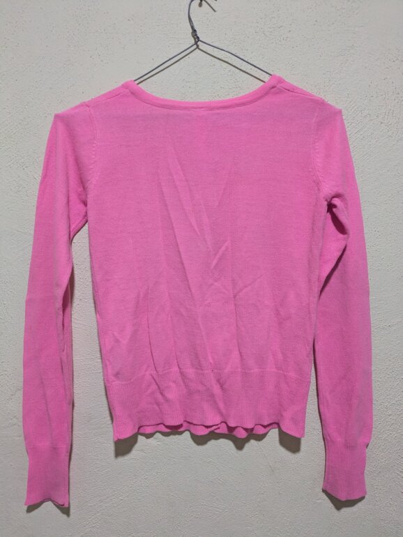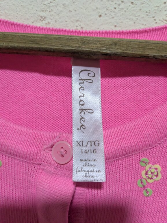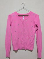 Hermoso cárdigan Cherokee en color rosa, confeccionado en tejido suave y ligero que brinda comodidad durante todo el día. Presenta un diseño delicado con pequeños bordados florales distribuidos en toda la prenda, cuello redondo y cierre frontal con botones. Ideal para complementar outfits casuales o darle un toque femenino a cualquier look. Perfecto para uso diario o para ocasiones especiales.