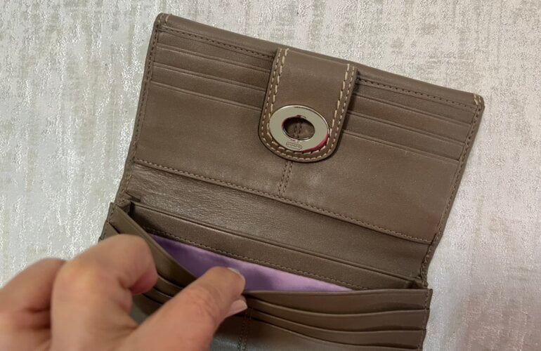 Cartera Coach bifold cierre de giro.