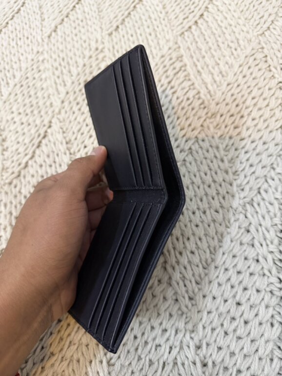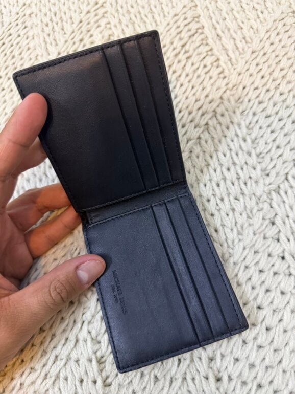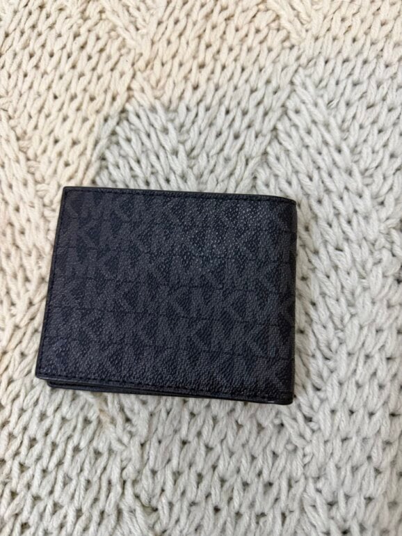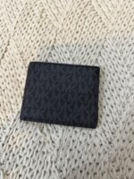 Cartera de piel color negro y olograma en gris de MK