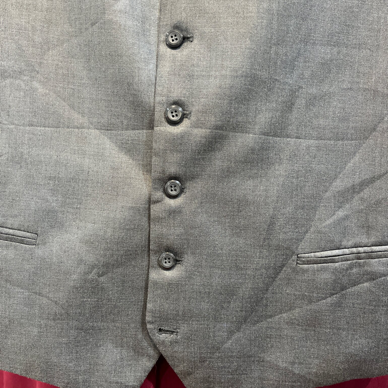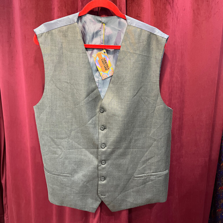 Chaleco color gris, elegante con cuello V. Ajustable de atrás.