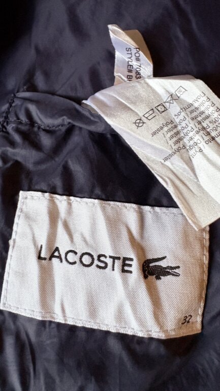 Chaleco acolchado Lacoste, brinda mucha calidez y resiste al agua. Equivale a talla Xs es ajustado, el logo Lacoste viene en la parte inferior derecha, único detalle en última foto, no tiene la palanca del cierre pero no impide su funcionalidad