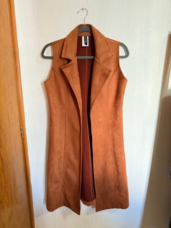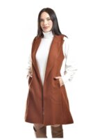 Chaleco largo tipo gamuza en tono camel, con diseño abierto sin botones que estiliza la silueta. Ideal para complementar outfits casuales o elevar looks básicos. Suave al tacto y muy fácil de combinar.