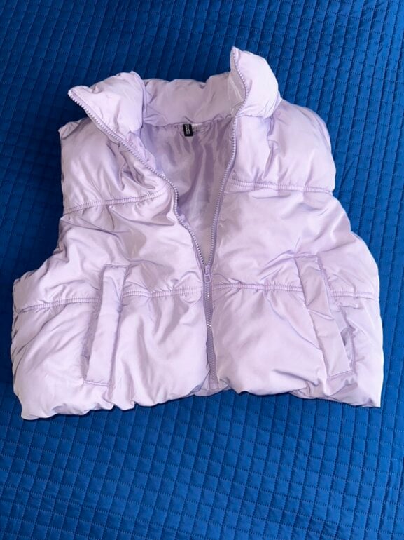 Chaleco acolchado color lila, con cierre, marca Divided de H&M, talla XS. En perfecto estado