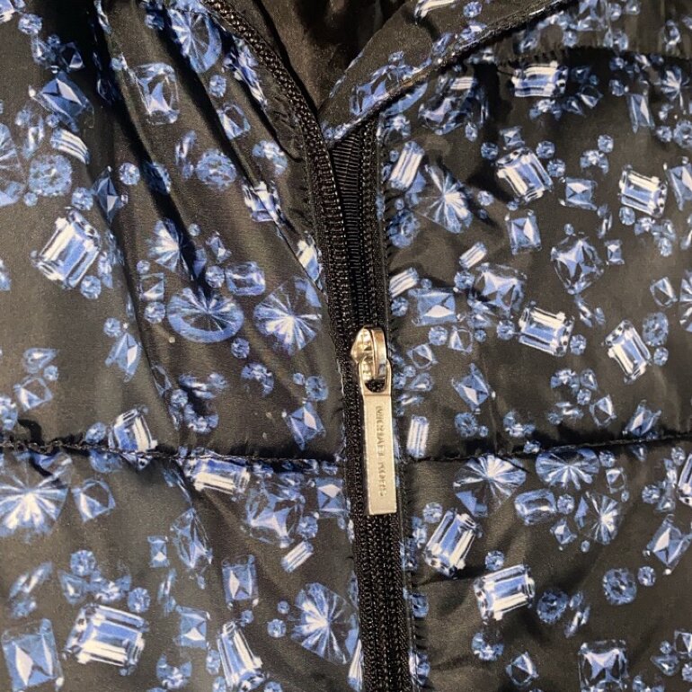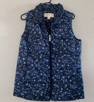 Chaleco MK mujer, original, talla XS, color negro con detalles azules.