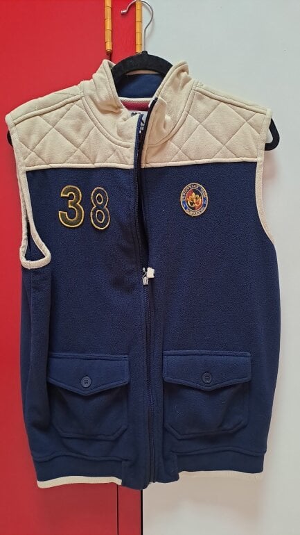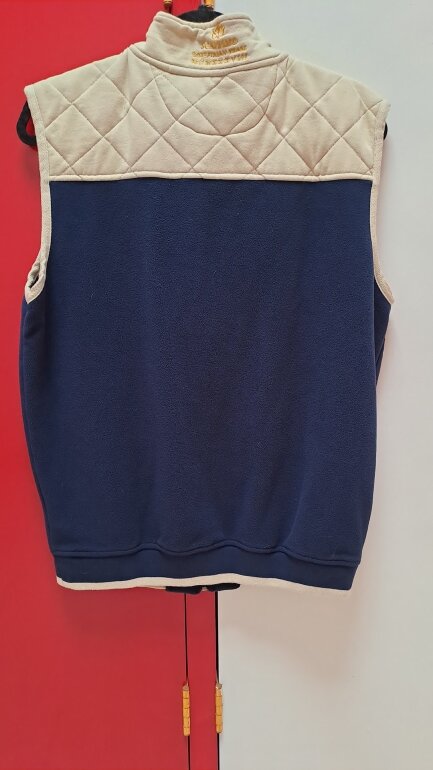 Chaleco polar con bolsillos al frente, tela polar, abrigador. Color azul marino y beige. Talla Grande (36 a 38) Marca Scappino. NUEVO, sin estrenar