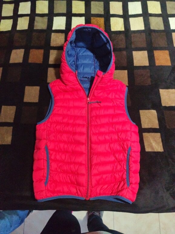 Chaleco color rojo por fuera azul por dentro en exelente estado para niño talla 10