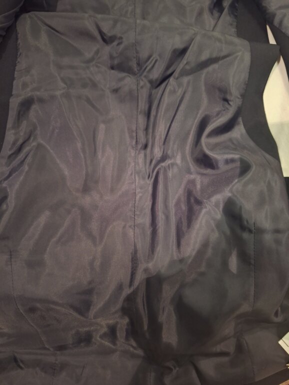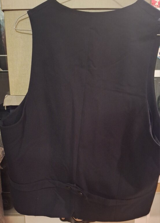 Nuevo, jamás usado, solo necesita una buena planchada qué al estar en closet con otras prendas se ha ido arrugando. En la parte trasera se ajusta mediante 2 botones y en la parte interna trae Forro azul , es muy lindo este chaleco, formal para eventos o una tarde de coktail.