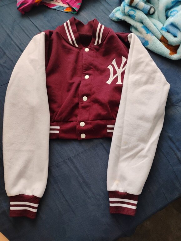 Es una chamarra ombligera de botones