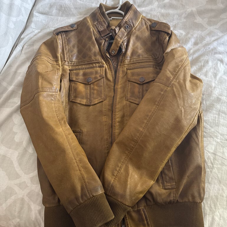 Medidas: 47 cm de hombro a hombro y 58 cm de axila a axila. En buen estado, solo el cierre desde que la compre no sirve. La etiqueta dice G pero siento que la talla esta reducida por lo que le puse M.