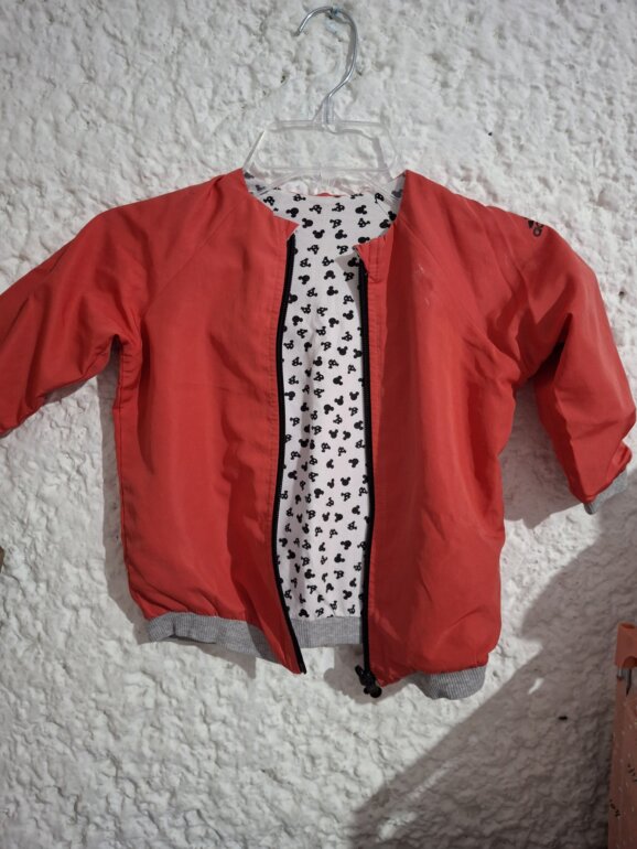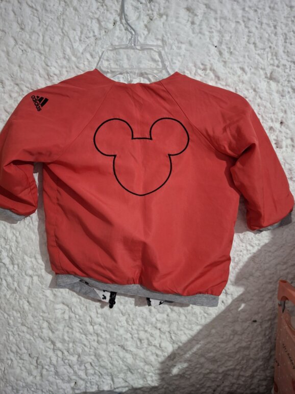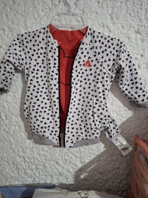 Hermosa chamarrita adidas para niña, es talla 2 pero viene amplia, esta en perfecto estado, no rota ni maltratada, es doble vista y se mira super coqueta ya puesta y el.color es rojo.