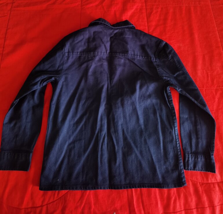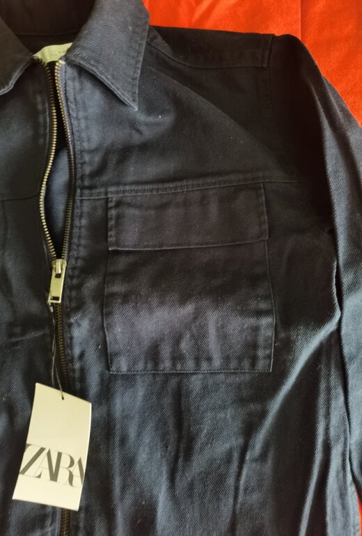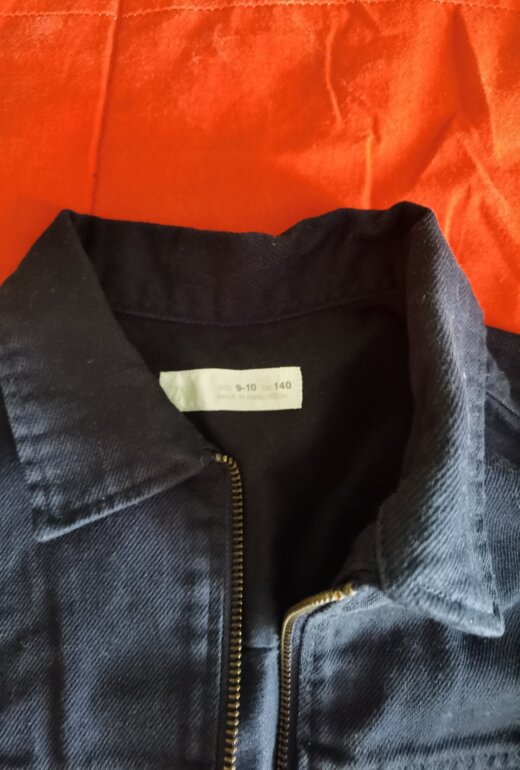 Chamarra tipo Denim color azul marino con bolsillo enfrente talla 9-10 años