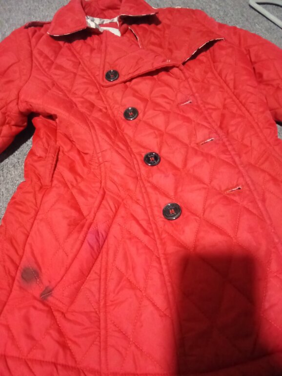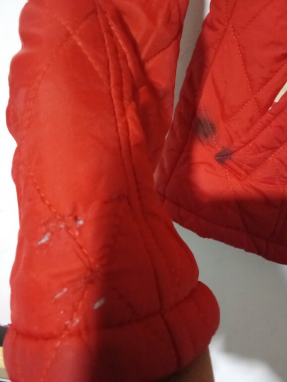 Chamarra Burberry tal cual las fotos tiene unas manchitas negras como se ve en fotos y unos rasguños en la manga derecha de la parte de abajo doblada la manga nosé nota o quisa mandar a poner un parche de ahí en fuera tal cual como se por eso el precio 100 % original