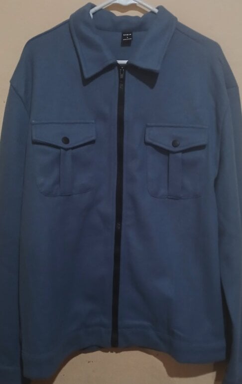 Chamarra con cremallera y bolsillos. Color azul. Talla L. SHEIN. La tela es de gamuza y no estira. Envios los lunes