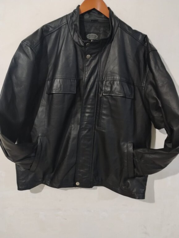 Especificaciones: chamarra de piel genuina en color negro, con cierre al frente y bolsas laterales, una pequeña bolsa discreta en parte superior con cierre, super bonita y como nueva sin detalles