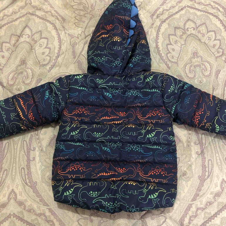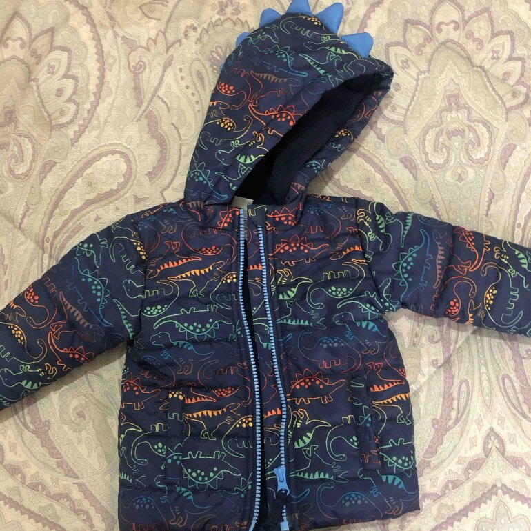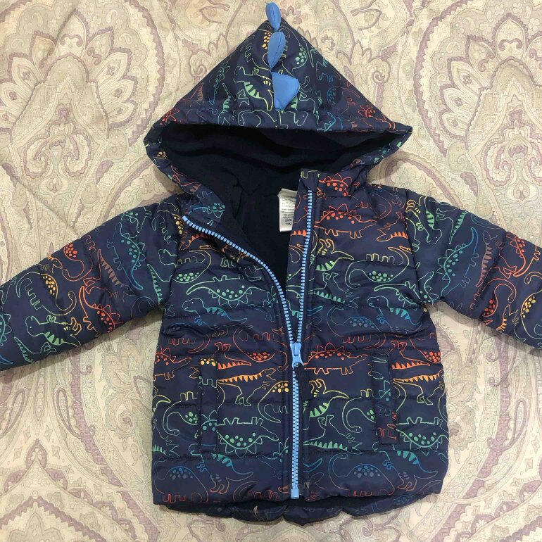 Chamarrita calientita para la temporada, nueva sin etiqueta. Nunca la uso mi Niño, no hizo frío en la guadalajara el año pasado. Color azul marino con dinosaurios de colores y gorro. Impermeable por fuera y por dentro polar
