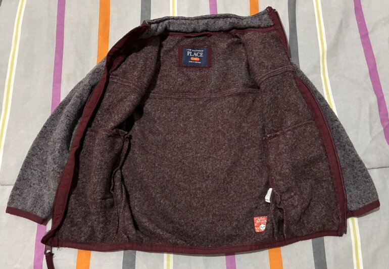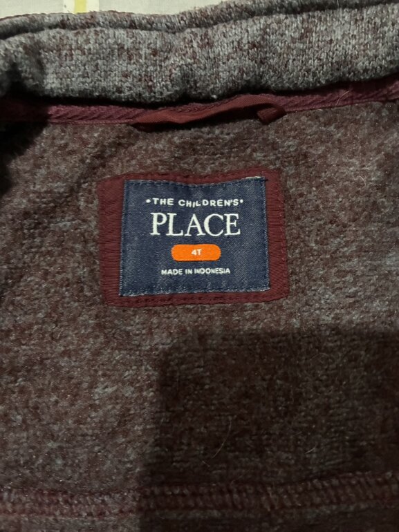 Chamarra de forro polar marca The Children’s Place color redwood para niños de 4 años en perfecto estado