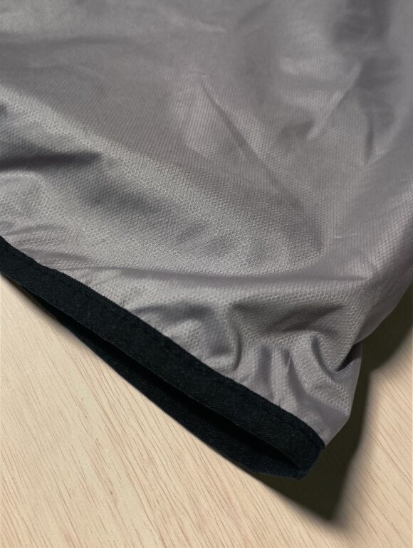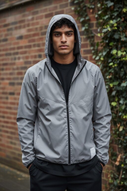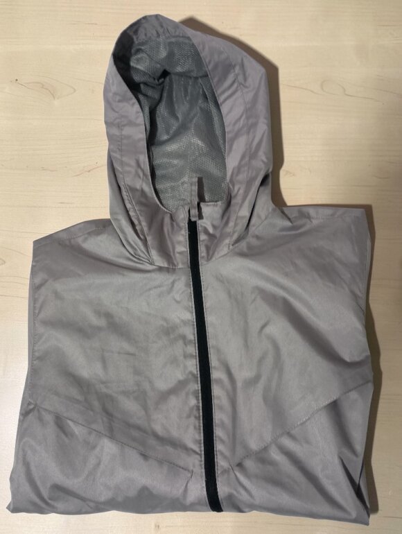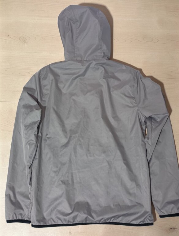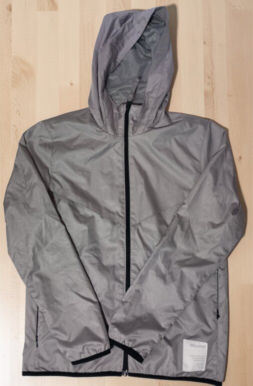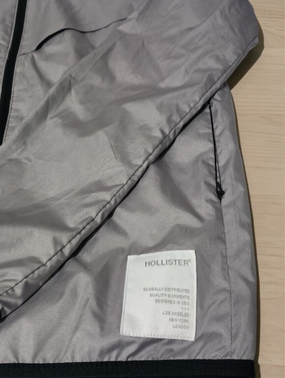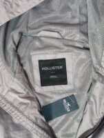 Chamarra original marca Hollister, ideal para clima fresco o lluvioso. Diseño moderno y minimalista en color gris con cierre frontal negro que le da un toque contrastante.