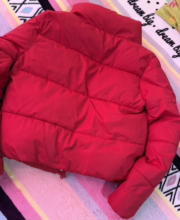 Chamarra corta en color rojo talla M, en excelentes condiciones, puesta una vez.. súper calientita sin ningún detalle 50 cm de largo, de axila a axila mide 48 cm